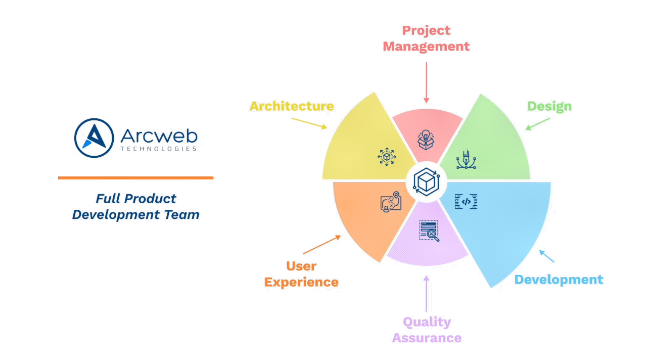 Arcweb’s proven and experienced cross-functional teams include Product and Project Management, UX Design, Software Architecture, Engineering and QA resources. Each of these disciplines is adjusted dynamically throughout the project in response to business needs, key milestones, and the design and development sprint cycles.